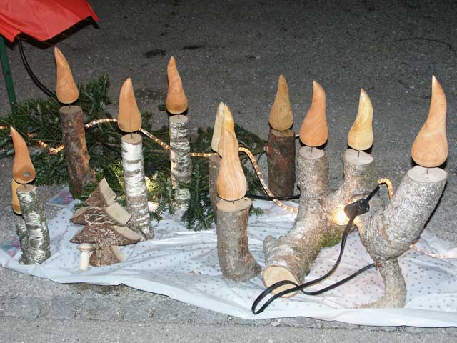 Unsere gut laufenden Holz-Kerzen! Gedrechselt von Danielas Götti.